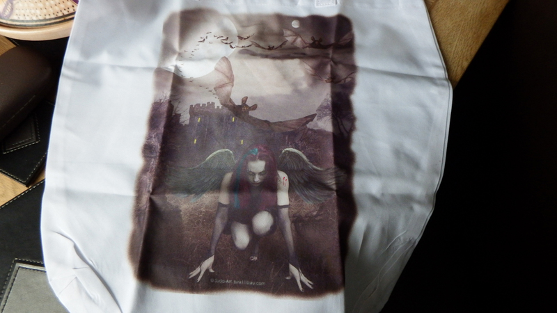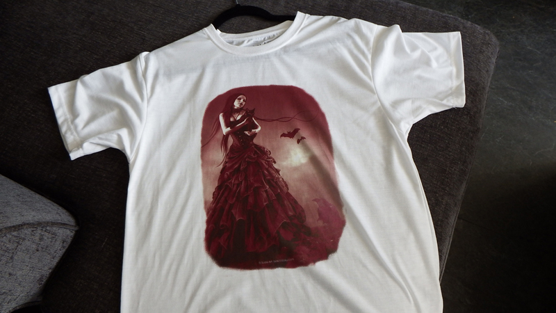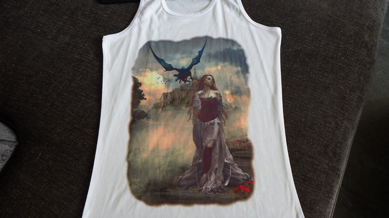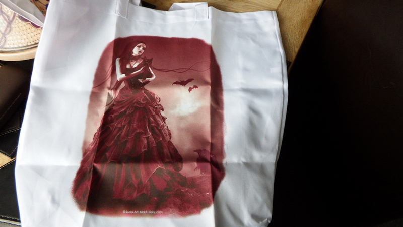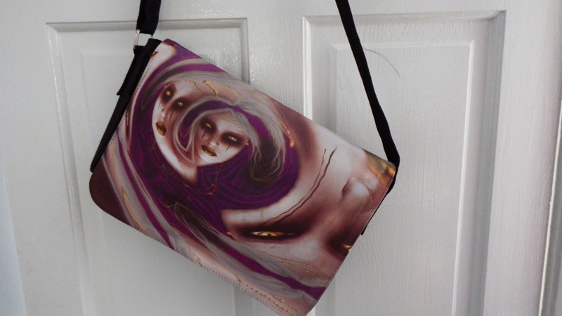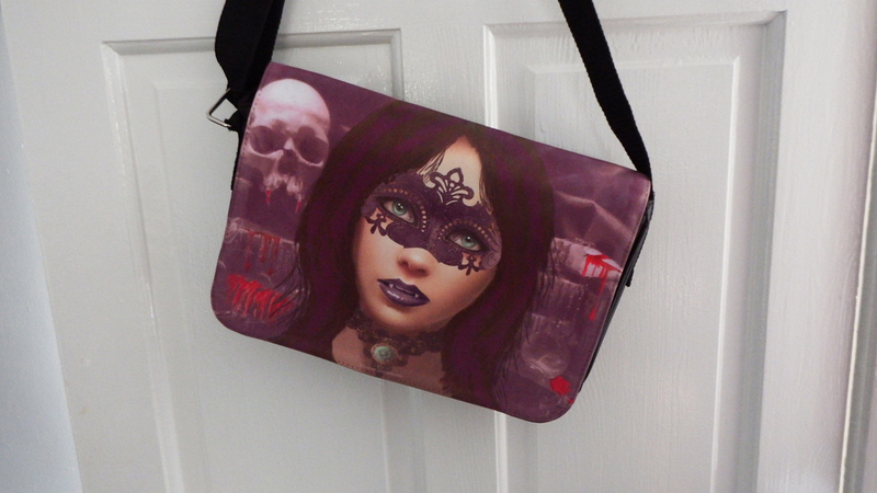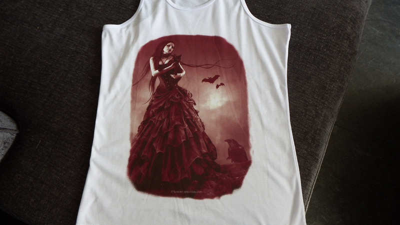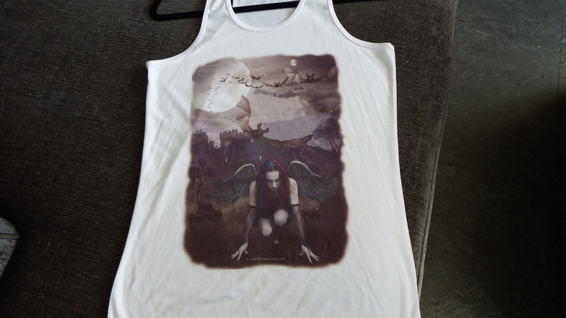 In the last couple of years following succesfull Trade Fair weekends like 'Whitby Goth Weekend', I have been asked if i put my Artwork onto other Merchandise. Following some advice from a fellow Artist Melanie from Madams Pin ups, on what would sell best i have now got a few of my pieces available on Ladies Vests,,Unisex Tees , Mugs , small messenger bags and Tote Bags see displayed below.